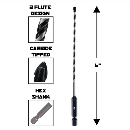 1/8" x 6" Masonry Drill Bit.  Industrial Grade All Purpose Masonry Bits for Concrete, Stone, Block, & More!