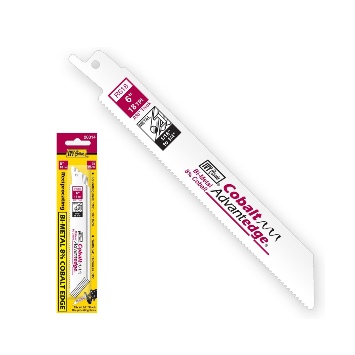 - Cobalt Bi-Metal blades with 8% cobalt matrix II alloy-steel cutting edge.